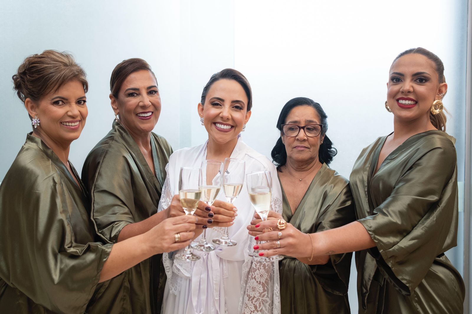 Para madrinhas e acompanhantes, disponibilizamos uma paleta harmoniosa e sofisticada, criando um visual uniforme, delicado e perfeito para o making of.